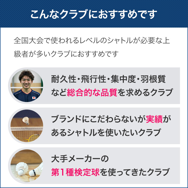 世界中で使用。耐久性能・飛行性能・飛距離集中度・ガチョウ羽根の品質といった総合力NO.1試合球。